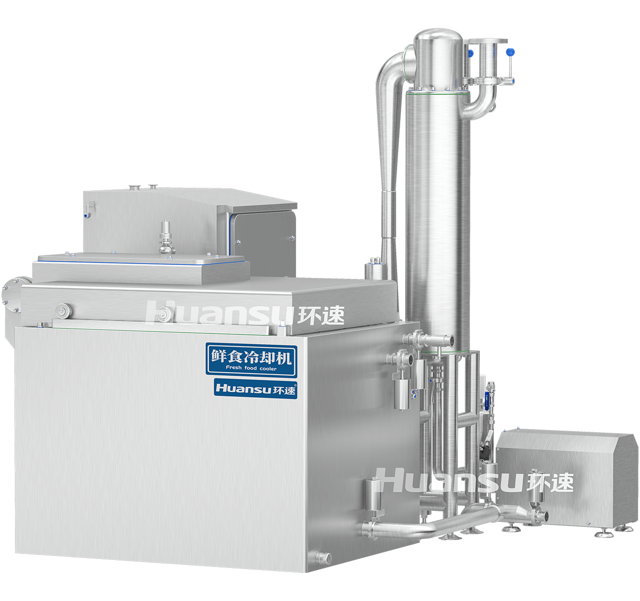 把高溫食品批量放入全封閉的真空艙中,在抽走空氣的過(guò)程中,食品中的水將會(huì)沸騰,持續(xù)吸收食品自身的熱量,從而在不依靠高能耗制冷系統(tǒng)、無(wú)外來(lái)污染風(fēng)險(xiǎn)的前提下,實(shí)現(xiàn)食品的快速冷卻。
