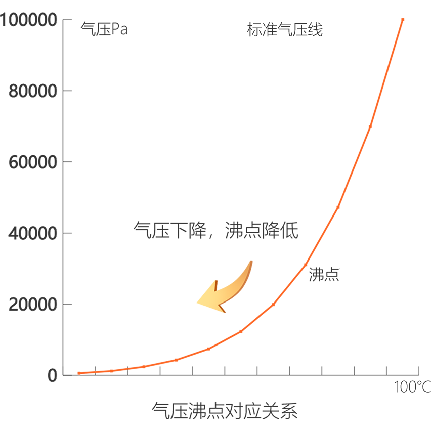 氣壓越低水的沸點(diǎn)越低、水沸騰吸熱,二者結(jié)合起來(lái)便是真空冷卻。通過(guò)降低食品所處空間的氣壓,將水的沸點(diǎn)從100℃(一個(gè)標(biāo)準(zhǔn)大氣壓)降至0℃(610pa),該過(guò)程中食品中的水會(huì)沸騰吸熱,突破食品自身物質(zhì)構(gòu)造對(duì)散熱的影響,最終用微量的水分散失換來(lái)食品快速均勻的冷卻。