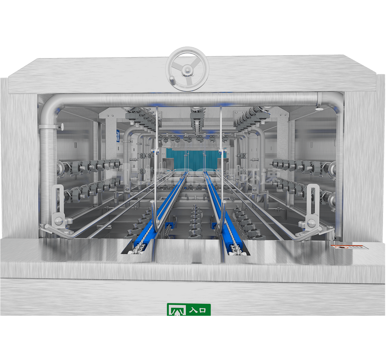高溫高壓全覆蓋式噴淋,無(wú)需洗滌劑,去除頑固污漬,滅菌不留死角;三級(jí)水箱系統(tǒng)合理配置水資源,循環(huán)用水節(jié)能減排;清洗段后端可選配風(fēng)干機(jī)、烘干機(jī),快速去除容器表面殘留的水分。