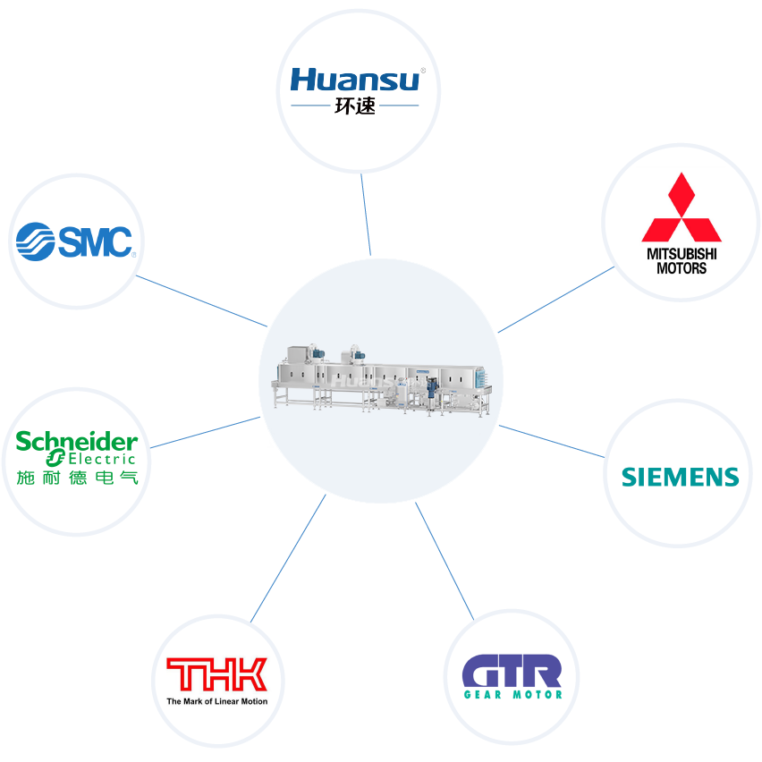 設(shè)備集清洗、滅菌、除水等功能,可減少人員配備,降低人工成本;清洗段與風(fēng)干機、烘干機緊密連接,且風(fēng)機置于通道上方,節(jié)省車間場地。高溫高壓清洗,無需洗滌劑,減少耗材成本開銷;循環(huán)利用水資源,更省水,降低排污成本;使用蒸汽噴射加熱,升溫速度快,比電加熱更節(jié)能。