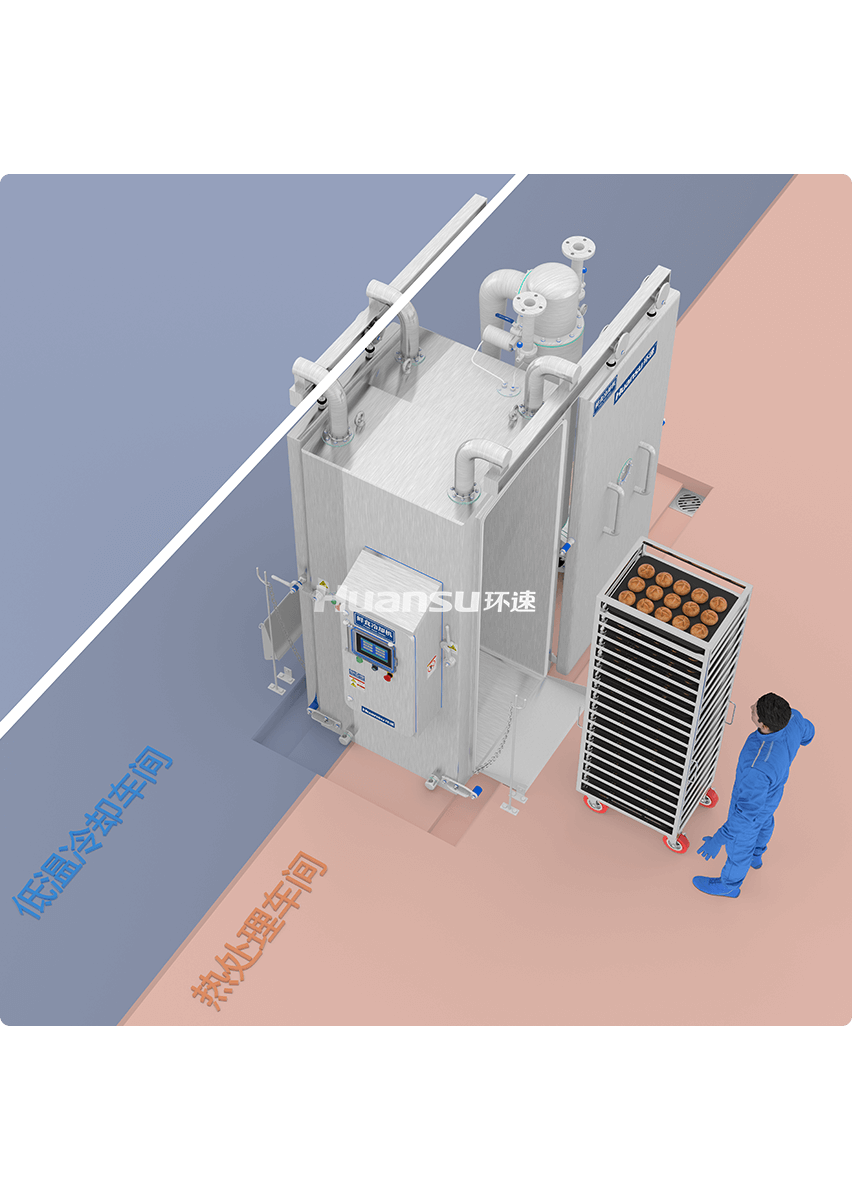 貫通式雙門+嵌入式安裝,熱區(qū)投料/冷區(qū)出料,快速冷卻后隨即包裝。