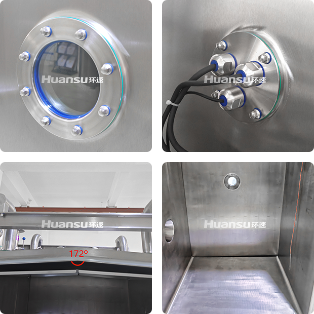 雙坡頂設(shè)計(jì)+240目拉絲拋光+172°衛(wèi)生傾角,防止凝水滴落影響品相。