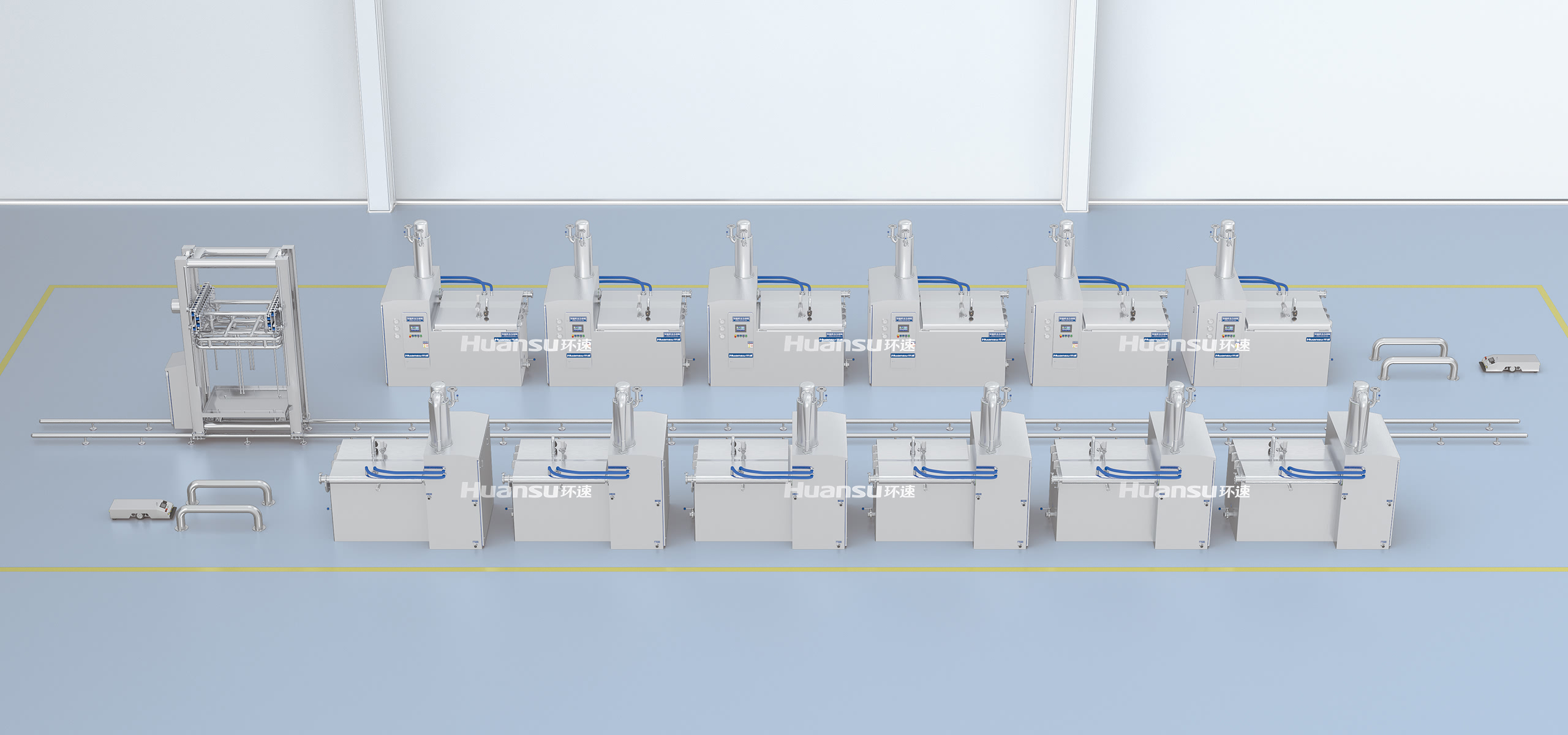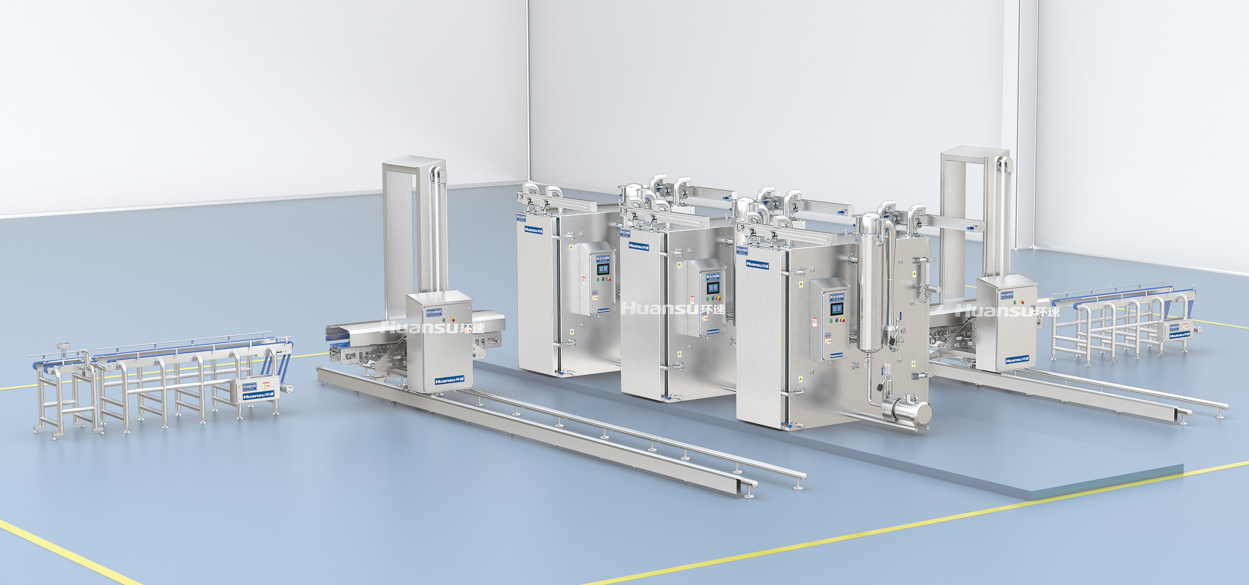 隨著食品工業(yè)的發(fā)展,企業(yè)對自動化生產(chǎn)的需求愈發(fā)突顯,出于規(guī)?;?、標準化、集約化生產(chǎn)的需要,依賴人力的傳統(tǒng)食品冷卻工藝不再適應(yīng)降本增效、數(shù)字化轉(zhuǎn)型的大趨勢,建設(shè)無人化智能車間成為了中高端企業(yè)未來發(fā)展的破局之法。環(huán)速充分運用數(shù)智化創(chuàng)新成果,基于智能算法進行工藝流程設(shè)計與編程,推出了自動化食品冷卻線,運輸、裝載、冷卻、卸載等環(huán)節(jié)均實現(xiàn)了自動化,不僅流程更加暢通高效,工藝誤差也得到控制,降本增效的同時提升了產(chǎn)品的品質(zhì)與衛(wèi)生,讓企業(yè)更具市場競爭力。
