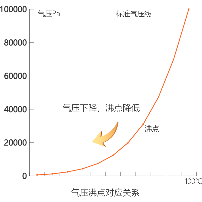 已知水的沸點(diǎn)隨氣壓的下降而降低,且水沸騰時(shí)會(huì)從環(huán)境中大量吸熱。將食品置于真空中,由于水的沸點(diǎn)遠(yuǎn)低于食品的實(shí)際溫度,食品自身含有的水分將會(huì)持續(xù)沸騰,弱化食品質(zhì)地和構(gòu)造對(duì)散熱的不利影響,均勻地吸收熱量,使食品內(nèi)外組織同步快速降溫。