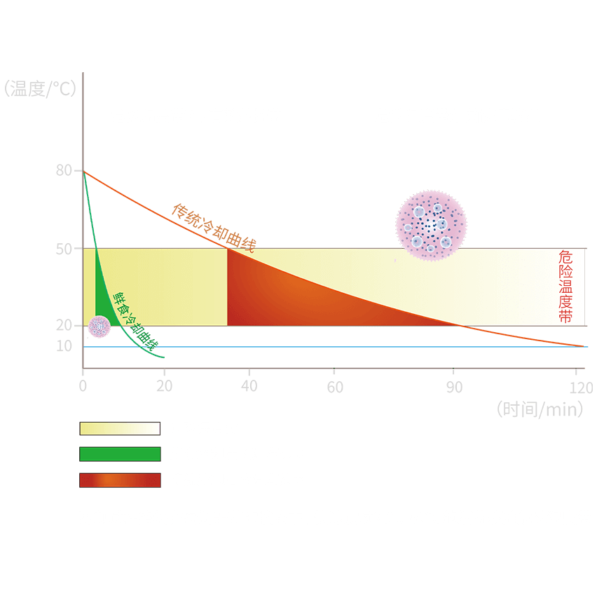 有別于傳統(tǒng)冷卻手段,真空冷卻不依賴空氣的散熱,食品全程處于密閉環(huán)境,既可杜絕來自外部的污染隱患 ,又能防止因降溫緩慢而導(dǎo)致的食品表面氧化等問題。真空冷卻后的食品,同外同溫?zé)o積熱,靜置后不回溫,大幅縮短在危險(xiǎn)溫度區(qū)間內(nèi)的停留時(shí)間,減少微生物的總數(shù),獲得更長的保鮮期。